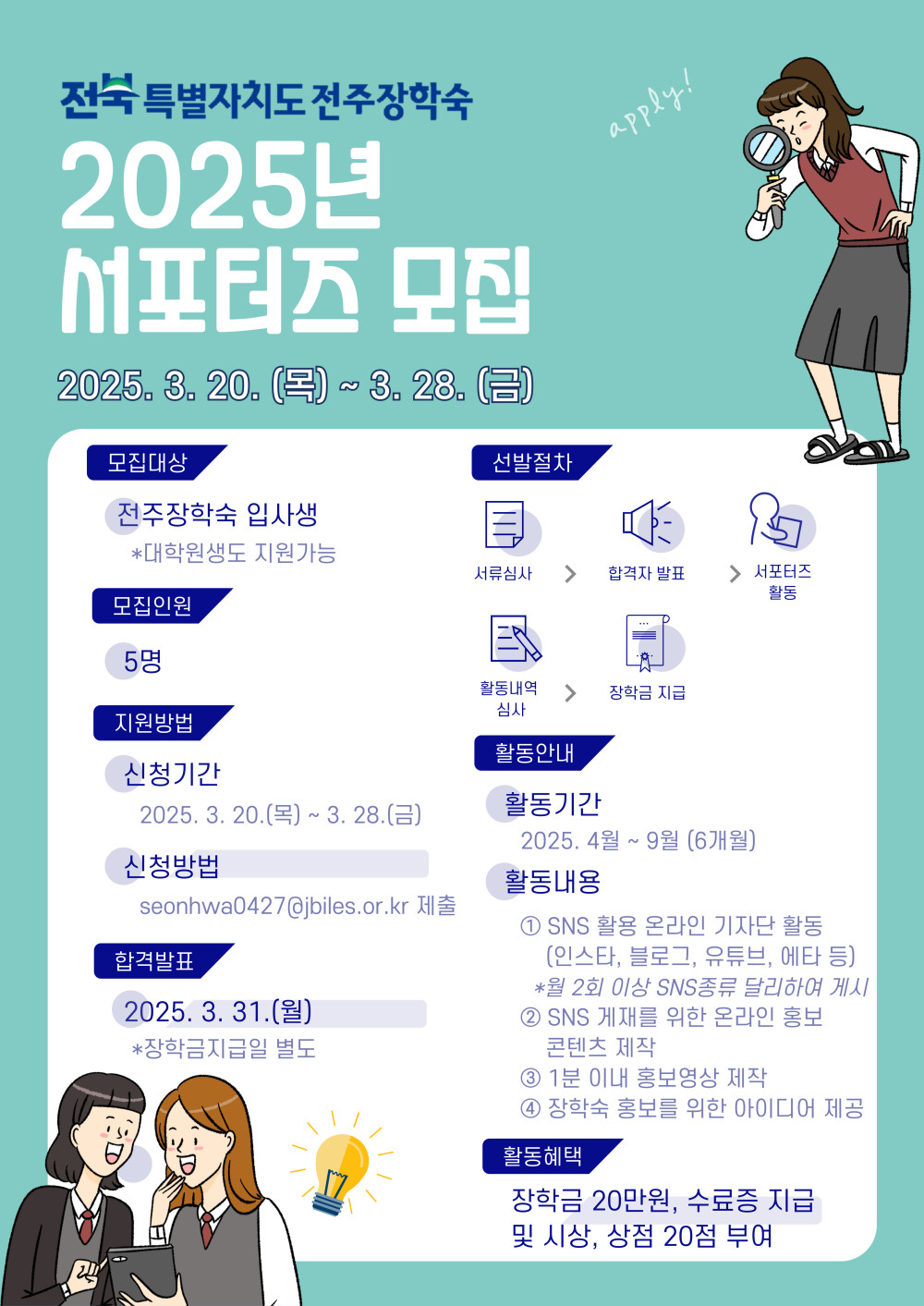 『2025년 특별지정장학금 기관 홍보 서포터즈 모집 안내』
